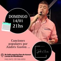 Canciones Populares. Invitación para iniciar el año con toda la energía de la música, escuchando Canciones de siempre que vamos a disfrutar. Andrés Gastón trae un repertorio de canciones populares de distintos géneros. Será en Bv. Italia esquina Pan de Azúcar de B° Lomas de Mendiolaza