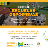 Cierre de las escuelas deportivas municipales. Se expondrán las destrezas aprendidas durante todo el año. El viernes, iniciando a las 18:00, será el momento de exposición de todas las escuelas. En tanto el sábado también a las 18:00, cerrará la escuela de patín con una demostración. Ambas serán en el Polideportivo Municipal. Se recomienda llevar reposera o manta para sentarse.