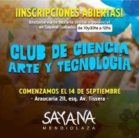 Club de Ciencia y Arte y Tecnología. Inicia la propuesta, dirigida a niños de 7 a 14 años. Exprerimentar, jugar, y disfrutar mientas se aprende es la consigna para esta convocatoria que se renueva año tras año. Será en Araucaria, esquina Av. Tissera, de B° El Talar.