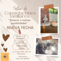Taller de constelaciones familiares. Nueva fecha de constelaciones grupales, esta vez bajo la consigna “Renacer a nuevas posibilidades”. Valor del intercambio: $15.000. Constela Ivana. Será en Av Tissera 4655, de B° El Talar.