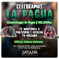 Celebración de la Pacha. Espacio Sayana invita, un año más, a la celebración de la Pacha en comunidad. Los vecinos podrán participar llevando su ofrenda. La ceremonia será oficiada por Será, en Av. Tissera 3199, esq. Araucaria, de B° El Talar.