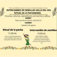 Intercambio de semillas y ritual de la Pachamama. Los vecinos de Valle del Sol realizarán una doble celebración de la Pacha. Por la mañana harán el ritual para el que invitan a concurrir con frutas, maiz, bebidas, miel y todo lo que se quiera devolver a la tierra. Por la tarde habrá intercambio de semillas, a la que también se podrán llevar gajos, tierra, limones, humus, plantines, estacas, etc. Ambas celebraciones serán en la Plaza de los Pájaros de B° Valle del Sol
