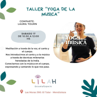 Taller Yoga de la Música. Meditación a través de la voz, el canto y el cuerpo. La invitación es a introducirse en canto y la música a través de técnicas milenarias heredadas de la India. Conectar con la música en el cuerpo expresando y cantando lo que nos pasa. Comparte Laura Tourne. Consultar costo. Será en Las Moras, 390 de B° El Talar.
