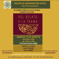 Taller de Bordado Textil En el marco de Rinterpretando Diseños Ancestrales se dictará este ciclo de clases destinadas a experimentar la herencia cultural cordobesa. En la primera clase se realizará un bordado agujado en fieltro sobre un textil a elección, en la segunda clase se realizarán muñecas agujadas, en la tercera se realizarán borlas y pompones en relieve, y en la cuarta se realizará una pieza textil de fieltro húmedo. El costo es de $5.000 por cada clase, que se pueden tomar por separado. Será en Las Abelias esquina La Alameda, de B° El Talar.