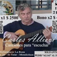 Canciones para escuchar con Carlos Allievi. El cantautor de nuestra localidad y director del Coral Mendiolaza, se presenta con canciones de raíz folclórica argentina y latinoamericana. Será en Portulaca 26, de B° El Talar