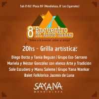 8° Encuentro del Arroyo Serrano. Actividad en conmemoración de la inundación de 2015. Se realizará en la Plaza 15F, de B° Los Cigarrales. Habrá charlas, música, bailes y sorteos con toda la comunidad de Mendiolaza. Participan Diego Dotto y Tania Beguán, Grupo Eco Serrano, Mariela y Néstor González con elenco Arte y Tradición, Sole Escudero y Manu Saleme. Grupo Yana Wankar, Duo Jano y Ballet folclórico Jasmín de Luna. Se sugiere llevar reposera o banquito.