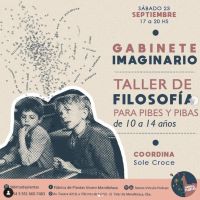 Taller de filosofía para pibes y pibas. Llega una propuesta para las pibas y los pibes de las Sierras Chicas: Gabinete Imaginario, Taller de filosofía para pibas y pibes de 10 a 14 años. Coordina Sole Croce. Inscripciones abiertas. Cupos limitados. Descuento si los participantes son dos. Será en Av. Tissera 4210 de B° El Talar.