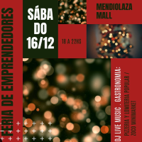 Feria de diseño y emprendedores. Mendiolaza Mall junto a Pizzería Popular, Lomiteria Polular, Solaz Club y Zoco Minimarket invitan a la feria navideña, con DJ MUSIC LIVE. Entada libre y gratuita. Se dispone de estacionamiento. Será en Ruta Intermunicipal km 9 1/2, Mendiolaza