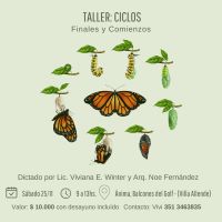 Taller Ciclos…finales y comienzos. Noe Fernández y Viviana Winter invitan a la actividad que realizarán en Villa Allende. El valor es de $10.000 e incluye el desayuno. Será en Anima, Balcones del Golf, en Villa Allende.