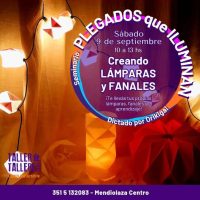Seminarios de plegados. Con Plegados que iluninan, comienza el ciclo de seminarios dictados por Orikigai. En la primera fecha se aprenderá a crear lámparas y fanales con papeles especiales de alta calidad. Al finalizar, los participantes se podrán llevar sus creaciones y herramientas para seguir produciendo. Cupos limitados, reserva con seña. Será en Los Ombúes 389, de B° Residencial Centro.