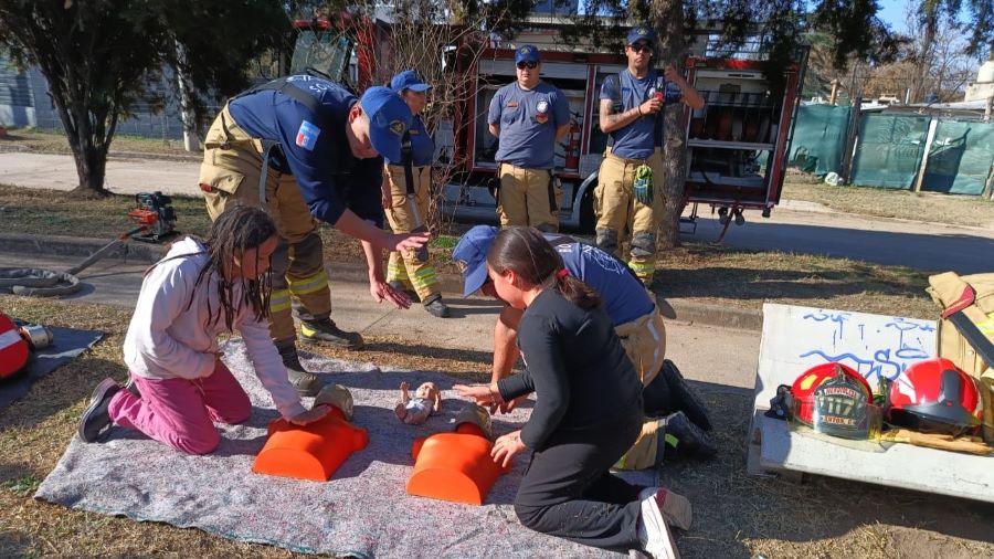 Bomberos enseñaron maniobras de RCP durante la fiesta del Día del Amigo. Bomberos y la comunidad en Mendiolaza