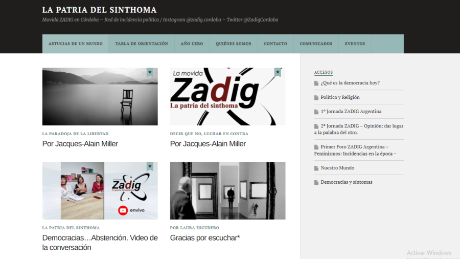 Una “movida” para pensar la realidad Un grupo de psicoanalistas argentinos, buscan incidir de manera activa y apartidaria, en las cuestiones de la vida política y de la democracia del país. En Córdoba, este grupo mundialmente conocido como Movida ZADIG, se denomina La Patria del Sinthoma. Cuenta con la participación de la psicoanalista Carolina Aiassa, vecina de Mendiolaza, Licenciada en psicología, psicoanalista y miembro de la Asociación Mundial de Psicoanálisis. Así, esta red de incidencia mundial, encuentra un punto de apoyo en Córdoba y un ejercicio de democracia y psicoanálisis desde Mendiolaza. Democracia en peligro Democracia y psicoanálisis desde Mendiolaza […]