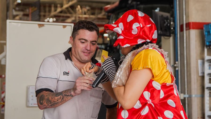Analia Navarrete y Gaspar Modesti son dos reconocidos payasos de la ciudad que nuclean su trabajo en el proyecto “3 y medio producciones”, enfocado en animación de fiestas y eventos particulares. Sin embargo, recientemente, fueron parte de una actividad que buscaba reforzar las reglas de seguridad a los trabajadores de una fábrica de cosechadoras cordobesa, CNH.