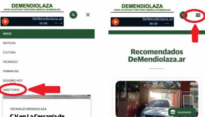 Tanto si se ingresa al portal desde un celular como desde una máquina de escritorio, el Directorio Comercial puede verse ingresando al menú que se encuentra a la derecha en la parte superior.