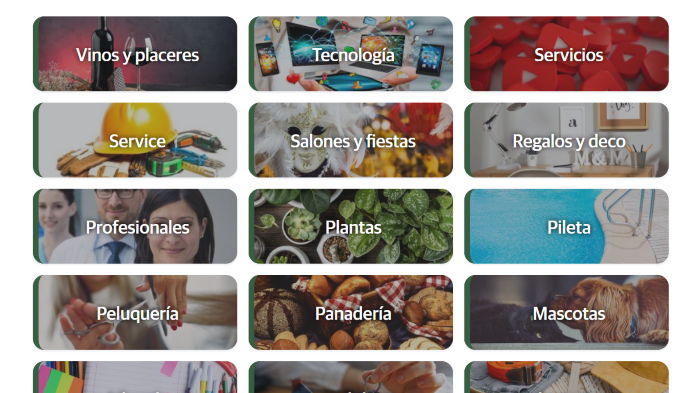 Los comercios se encuentran agrupados por rubros, que se presentan en sentido inverso al alfabético. Es decir que los rubros más próximos a la Z aparecerán primero y los cercanos a la A lo harán sobre el final.