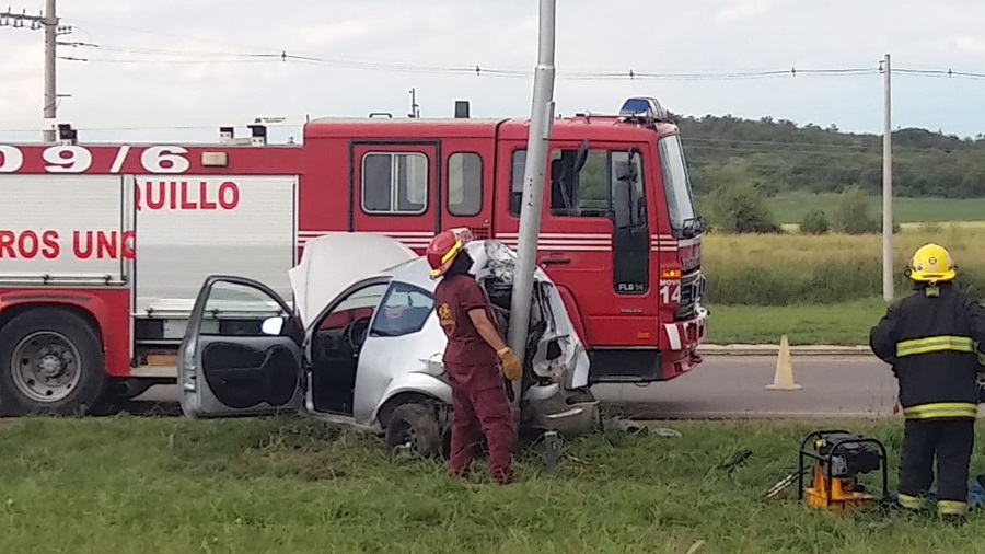 En el siniestro ocurrido ayer, el automóvil también se trasladaba en dirección a Córdoba, hasta que perdió el control en la rotonda. Luego impactó contra el poste de un alumbrado, tirándolo.