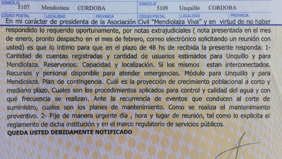 En abril de 2022, Mendiolaza Viva insistió enviando una carta documento que tampoco tuvo respuesta.