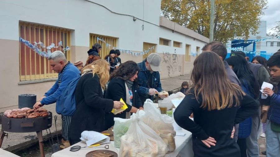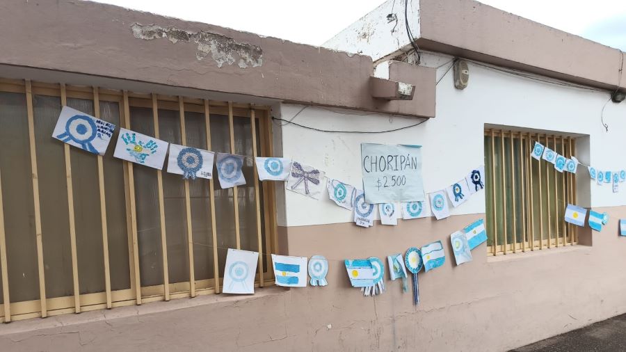 Las cooperadoras escolares de las tres instituciones armaron mesas dulces con comidas típicas del 25 de mayo para vender y recaudar fondos.