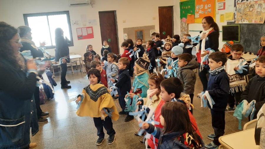 De 1° a 6° grado se trabaja la fecha como una de las efemérides más importantes en lo que respecta al calendario escolar. Durante la semana los estudiantes estuvieron ensayando para el acto, preparando la decoración del colegio y, paralelamente, trabajando la historia de la fecha desde las aulas.