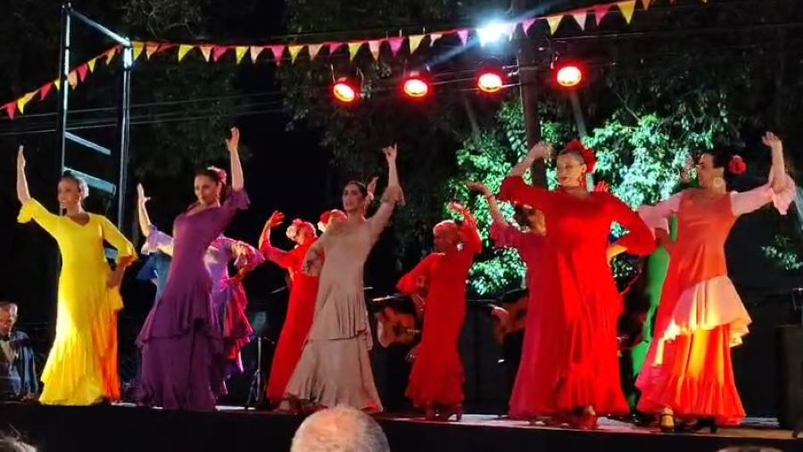 La jornada culminó con el tablao, donde se presentó el grupo Actitud Flamenca, dirigido por Checchia. Luego se sumaron Mariano “el Gitano”, Maru Montaña, Alexis Menéndez y otros artistas profesionales. La música y la danza se desarrollaron frente al público, con el escenario al aire libre y la posibilidad de degustar tortillas, tapas y paella, elaboradas especialmente para la ocasión.