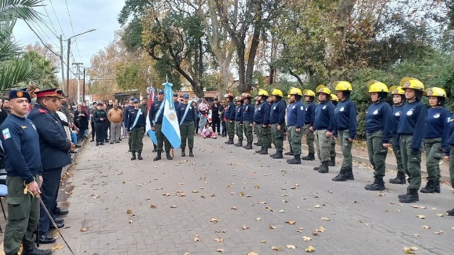También estuvieron presentes el comisario de Mendiolaza, veteranos de Malvinas y el cura párroco, Pablo Nelles, quien bendijo a bomberos y bomberas.