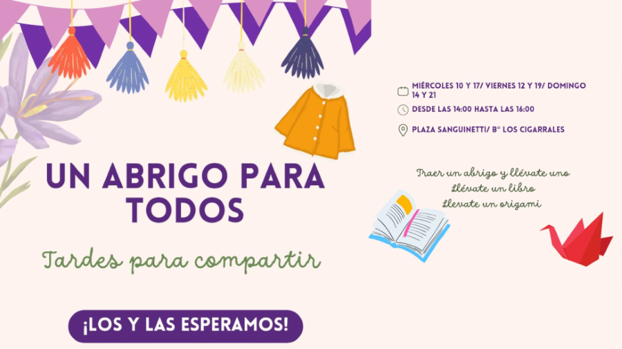 La iniciativa se puso en marcha el miércoles pasado y se extenderá por las próximas dos semanas. Miércoles, viernes y domingos, de 14:00 a 16:00, en la Plaza Sanguinetti. Invitan a reunirse con chocolate caliente para compartir, y que las personas puedan llevar sus abrigos o retirar los que necesiten. A cambio ofrecen libros y figuras en origami. De esta manera, además de brindar la oportunidad de abrigar a quien lo necesite, con esta acción buscan generar el encuentro de la comunidad.