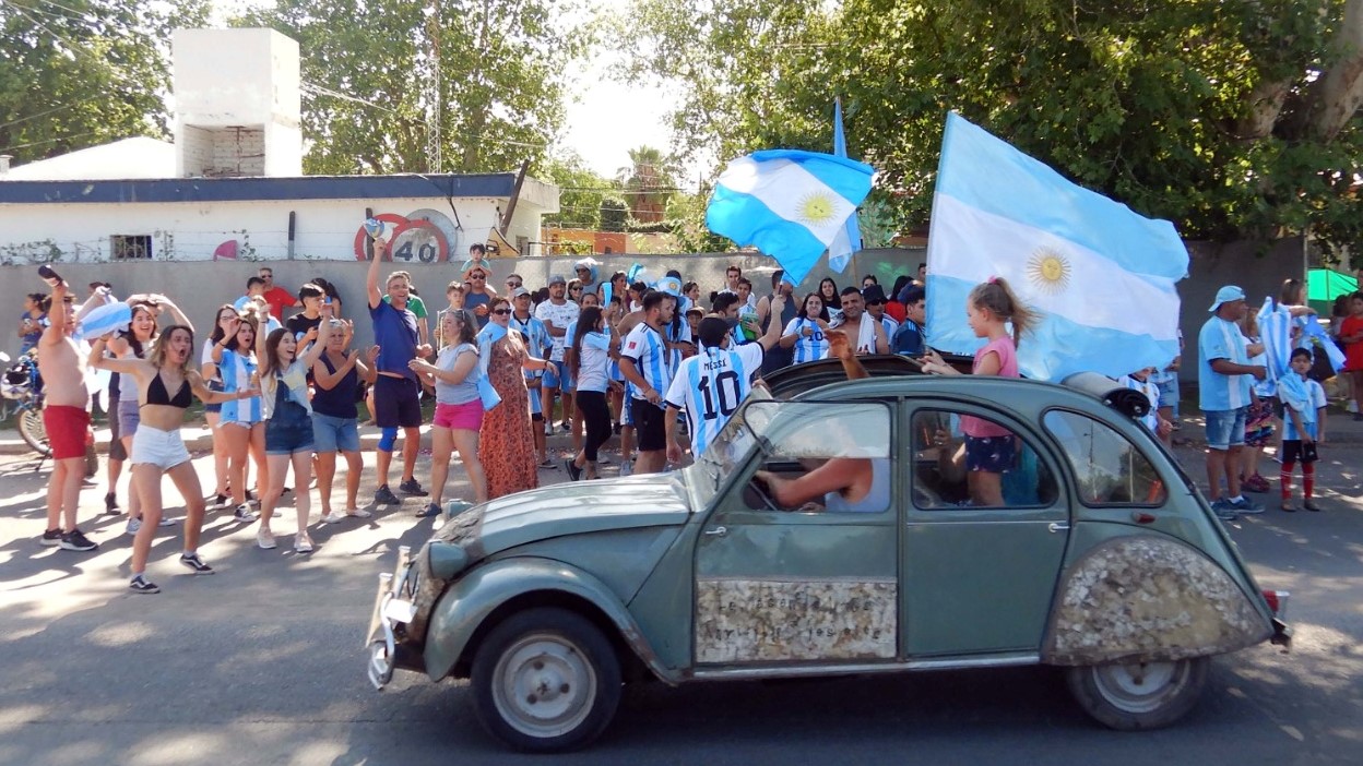 Como en casi todas las ciudades del mundo, en Mendiolaza la gente se volcó a las calles a celebrar el triunfo de la selección argentina.