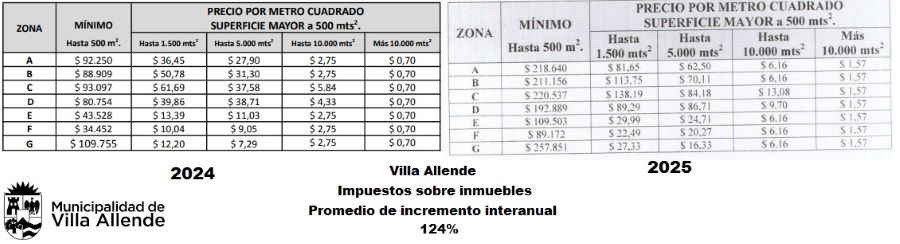 En el caso de Villa Allende se establece que en ningún caso el tributo a abonar deberá ser superior al 250% con relación al año anterior.