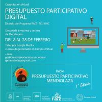 Capacitación en Presupuesto Participativo. Instancia virtual, a cargo de la UNC. Comienzan las capacitaciones para que los vecinos puedan elaborar las propuestas de Presupuesto Participativo. En esta primera etapa los videos estarán disponibles, de forma sincrónica, hasta el 28 de enero. El taller virtual asincrónico se complementará con un taller, también virtual pero sincrónico, de dos horas para recibir comentarios, dudas y revisar lo aprendido. La fecha del taller sincrónico se notificará por la Plataforma. La participación es gratuita, el cupo es limitado y los interesados deben inscribirse a través del formulario al que pueden acceder desde aquí.