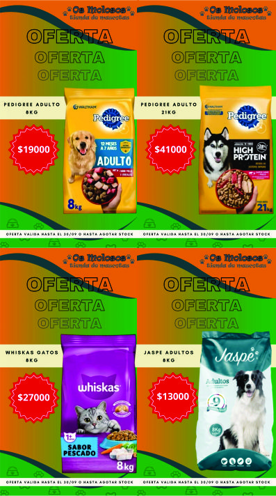 Os Molosos sigue cuidando de tus mascotas. Este mes, grandes ofertas en alimentos balanceados para perros y gatos.