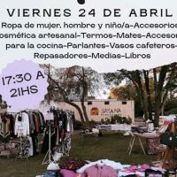 Feria al aire libre con variedad de productos: ropa, calzado, accesorios, libros, objetos de decoración, difusores, productos para mascotas y más. Espacio con probador para mayor comodidad.