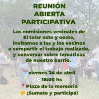 Encuentro participativo para compartir avances, proyectos y gestiones de las comisiones vecinales de El Talar Este y Oeste. Espacio de diálogo para propuestas e inquietudes de vecinos.