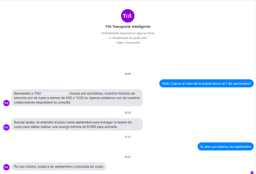 Demendiolaza se comunicó por mensaje privado a través de las redes sociales de la empresa, a fin de confirmar el precio. La respuesta fue que la entrega gratuita se había extendido por todo el mes de septiembre.