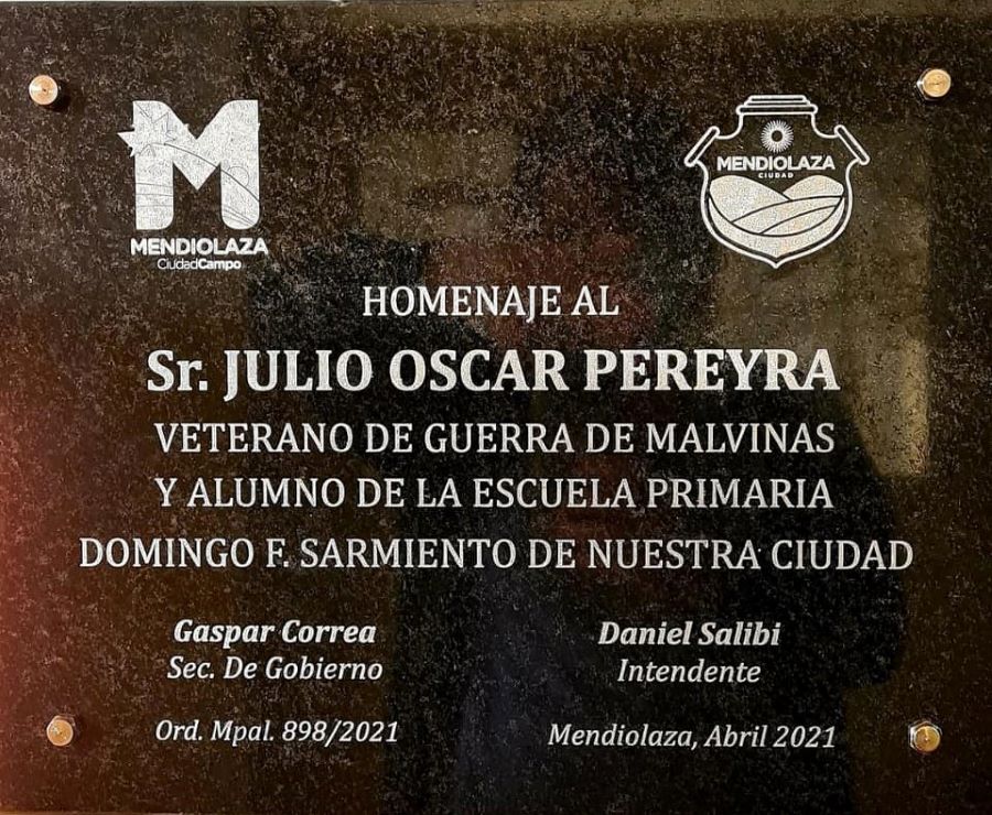 Ofrecemos hoy la entrevista con Oscar Pereyra. Hizo la primaria en la escuela Sarmiento de Mendiolaza. Participó del conflicto del Canal de Beagle y combatió en las Islas Malvinas. En 2016 el Concejo Deliberante autorizó la colocación en el colegio de una placa en su su reconocimiento y honor.