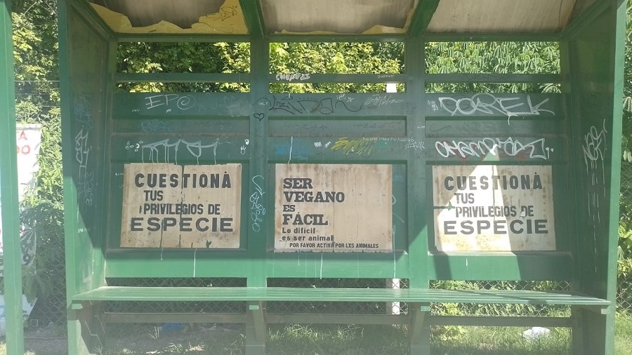 “Ser vegano es fácil, lo difícil es ser animal”, “Qué hiciste hoy para evitar el colapso”, “Cuestiona tus privilegios de especie”.Con el correr de los días fueron apareciendo en las calles de Mendiolaza diversos carteles y pintadas haciendo referencia al veganismo.